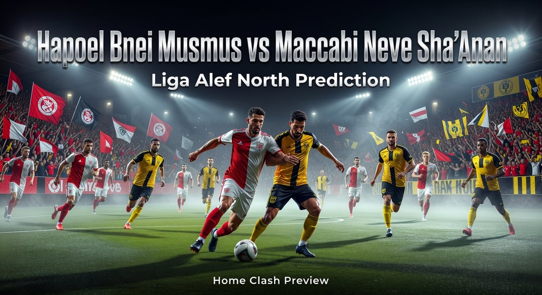 Hapoel Bnei Musmus is poised for a narrow home victory in this Liga Alef North clash, driven by their dominant head-to-head record of 5 wins in the last 8 meetings against Maccabi Neve Sha’anan. Maccabi’s recent form has faltered with three losses in their last five, giving the hosts a clear advantage. The top betting angle lies in backing the home win, which offers strong value amid the visitors’ slump. This prediction sets the stage for a deeper dive into lineups, form, and tactics—explore more via our football predictions.