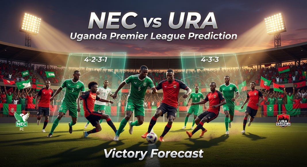 | NEC | 4-2-3-1 | GK: Hannington; Def: Magor, Buule, Odongo, Kabugo; Mid: Hakim, Mujjib, Ssali; Att Mid: Luyima, Rwothomio; FW: Cromwell Rwothomio | Reasons: Hannington retains spot after clean sheets in last 3 matches; Buule and Odongo partner centrally as Okao out long-term with Achilles injury (expected return July 2026), seen in recent cup win; Mujjib starts for midfield control targeting URA’s weak away defense. |