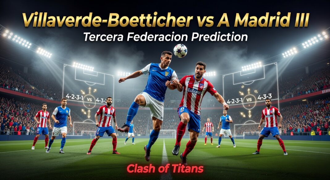 Villaverde-Boetticher sit 9th with mixed results in their last 5: W 1-0 at Siello, W 2-0 vs Pozuelo, D 0-0 at Leganes B, L 0-2 vs Trival, D 2-2 at Torrejon—strong home defense (two clean sheets) but vulnerable to quick transitions. They favor compact defending and long balls to outlets, controlling games via set-pieces at Boetticher. A Madrid III, league leaders on 53 points, boast DWWDD form, dominating possession (often 60%+) with technical midfield play and left-wing overloads that break low blocks—expect them to dictate tempo, forcing errors from the hosts’ backline in a tactical chess match. According to Sofascore match preview, the visitors hold a clear edge.